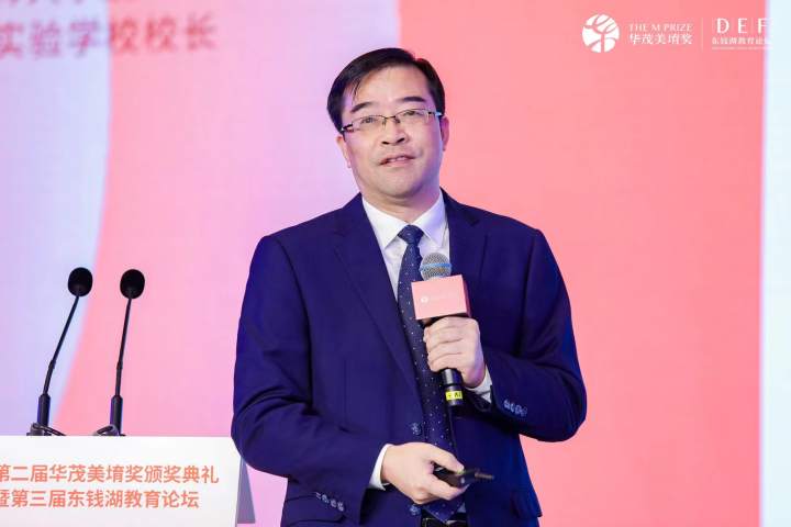 宁波华茂外国语学校副校长王行松,介绍学校以全场景渗透的“美育空间”浸润学生心灵