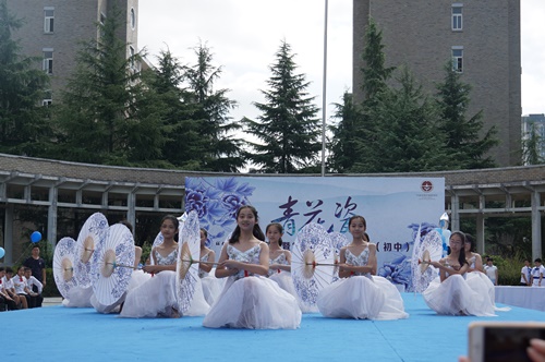烟雨氤氲,纤纤仕女。新出芭蕉,绿锈铜环。三部同学带来的歌舞和朗诵让我们仿佛看到了一幅令人流连的泼墨山水,一派让人沉醉的天青之色!是的,学生的成长何尝不是一个等待的过程,纵使隔江千万里,我都会在茫茫烟雨中等你!