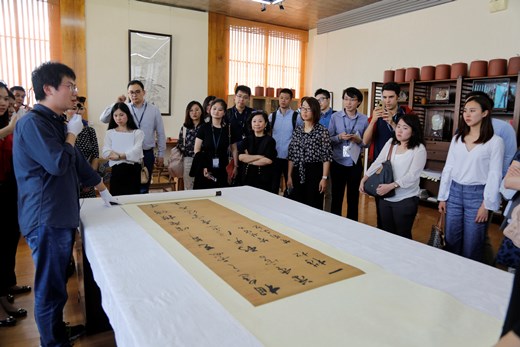 游学团此行还参观了华茂美术馆和华茂国际学校。行至华茂美术馆,墙壁上陈列的各类名画吸引了这帮“大同学”的眼球,馆内艺术珍品荟萃,收藏了元、明、清时期的书画精品和17至20世纪欧洲油画大师的作品3000余件,工作人员如数家珍地向大家介绍了部分作品和其背景文化,使游学团眼界大开。美术馆此次还特别精选了部分名作,让“同学们”近距离欣赏了美术馆珍藏的郑板桥、齐白石、潘天寿等大师的作品。