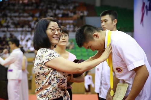 随后华茂教育集团总裁项丽君女士为在浙江省第四届中小学生游泳联赛中获奖的运动健儿们颁发奖项,并鼓励他们继续努力向前。