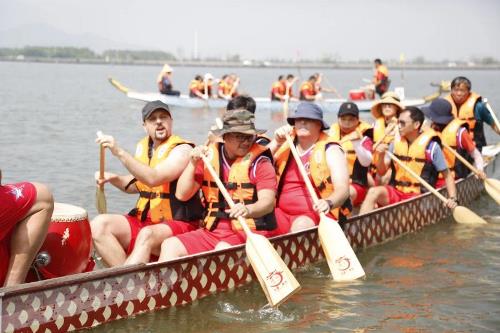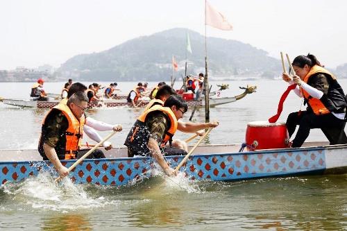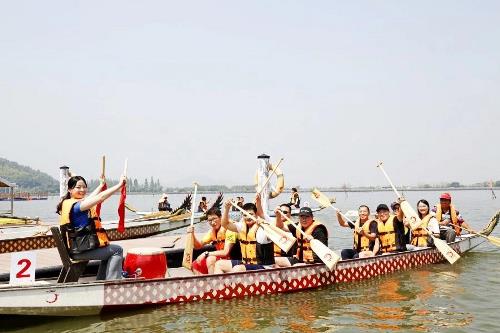 为弘扬民族文化,倡导健康运动,6月15日,由集团公司工会组织,华茂教育文化投资有限公司及东钱湖华茂希尔顿度假酒店工会联合承办的龙舟赛在东钱湖畔打响,来自集团各产业公司(学校)9支代表队,共81位的“运动员”参加了此次龙舟竞渡。