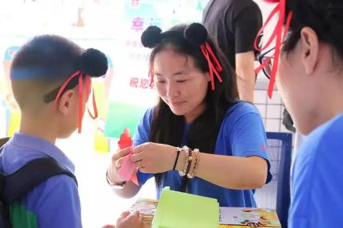 一颗红朱砂,开启智慧之旅。身穿汉服的书法大师们用朱砂为孩子额头正中心点上了一个红点,红红的朱砂痣是对孩子们最衷心的祝福,寓意着孩子从此耳明心亮,开启智慧征程,在学海中好读书,读好书。随后,孩子们走到涂鸦墙前,将五彩的手印留在上面,又踮起脚尖将心愿卡挂在心愿树上,他们将在这里留下纯真的童年和回忆,带走丰盈的理想和收获。